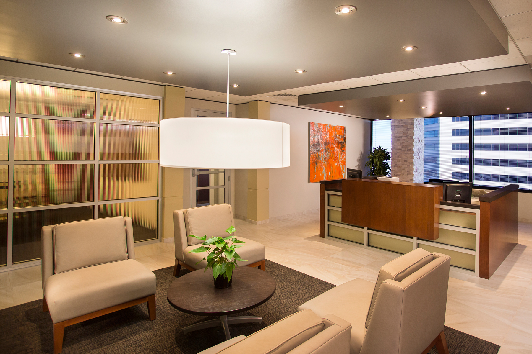 Jordy Construction was awarded the project based on a hard bid with multiple other GC’s and a glowing recommendation from the architect, Studio B2SJ, based on the successful completion of many other similar multi-phased, occupied buildouts that we have completed together. Normally a 16-week construction schedule would be more than adequate for an 18,000 square foot buildout, but with three phases required to accommodate an occupied office, the project turned into three roughly 6,000 SF projects of 6 weeks, 4 weeks, and 6 weeks. To further complicate the schedule, the fixtures for the entire project were backordered and arrived a week after the first phase was to be completed so the second phase—the high end lobby and reception area—was compressed by one week to ensure that the overall end date would be met.