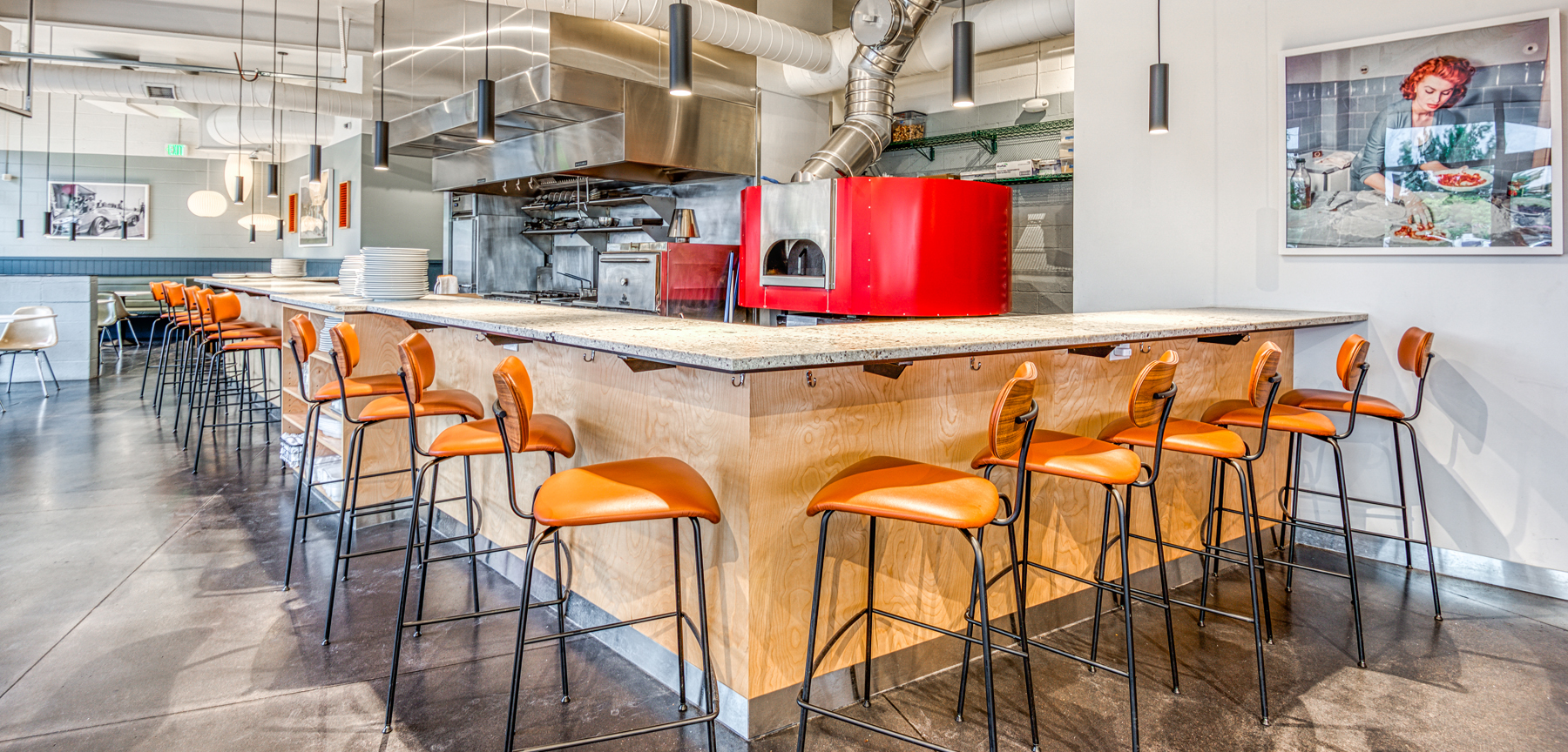 This project was an adaptive reuse of 60-year gas station and tire shop on East Colfax. The architect, Semple Brown, made brilliant use of the nostalgic features – triangular flared roof, 1950’s style storefront, and garage doors, to accentuate the new full service Italian food and gourmet pizza restaurant. Jordy Construction installed all new infrastructure for the build out, including, HVAC, electrical and plumbing systems. Extensive leak testing and repairs were made to the roof. To accommodate the bar – detailed coordination meetings were conducted to assure all features fit exact per plan. One of the main features – the custom pizza oven – was staged early on to assure proper placement. The flue for the oven was customized to accentuate the design and comply with all existing building conditions. Despite all the challenges of building during the pandemic – this project was a success for all involved.