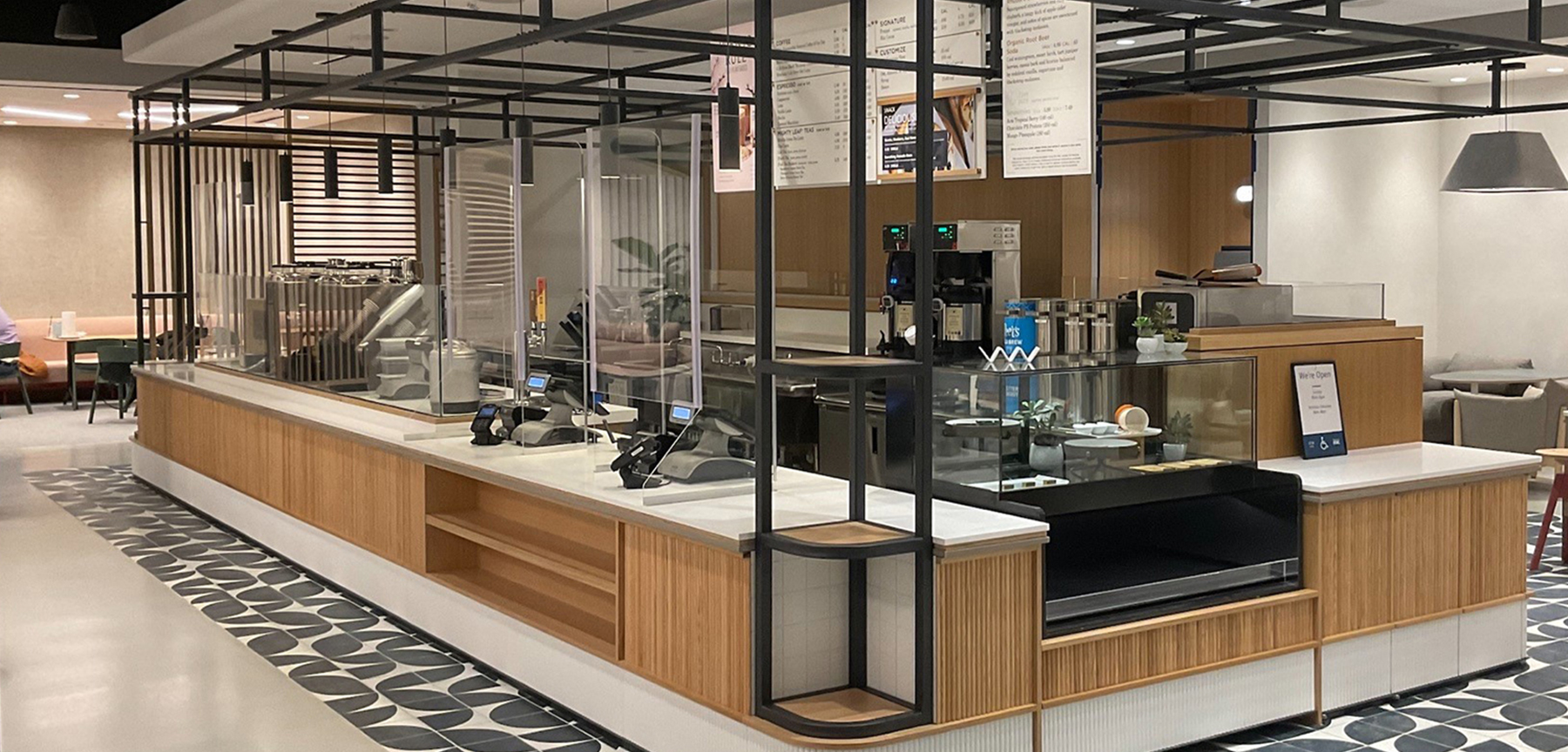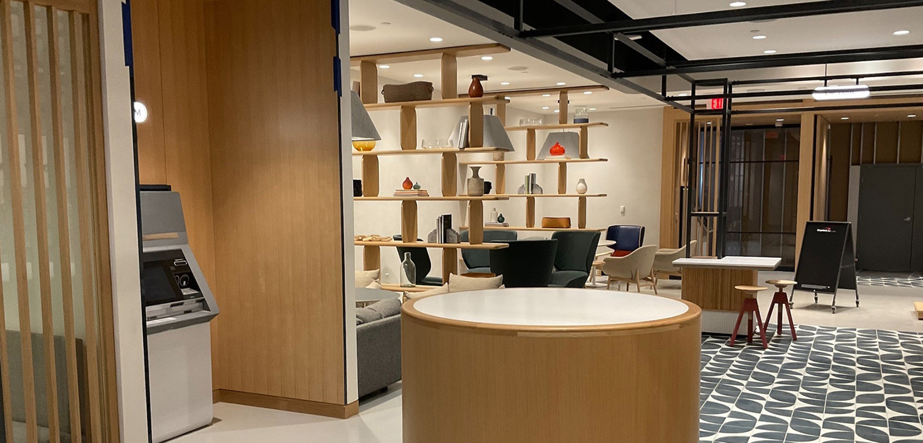 Capital One was a buildout of a first-generation banking concept that combined traditional banking operations with a café-style coffee shop. The space was divided between an open, customer-focused environment featuring wireless access, private financial coaching rooms, and café seating, and a secure back-of-house area that included offices, pantry space, and warehouse support.