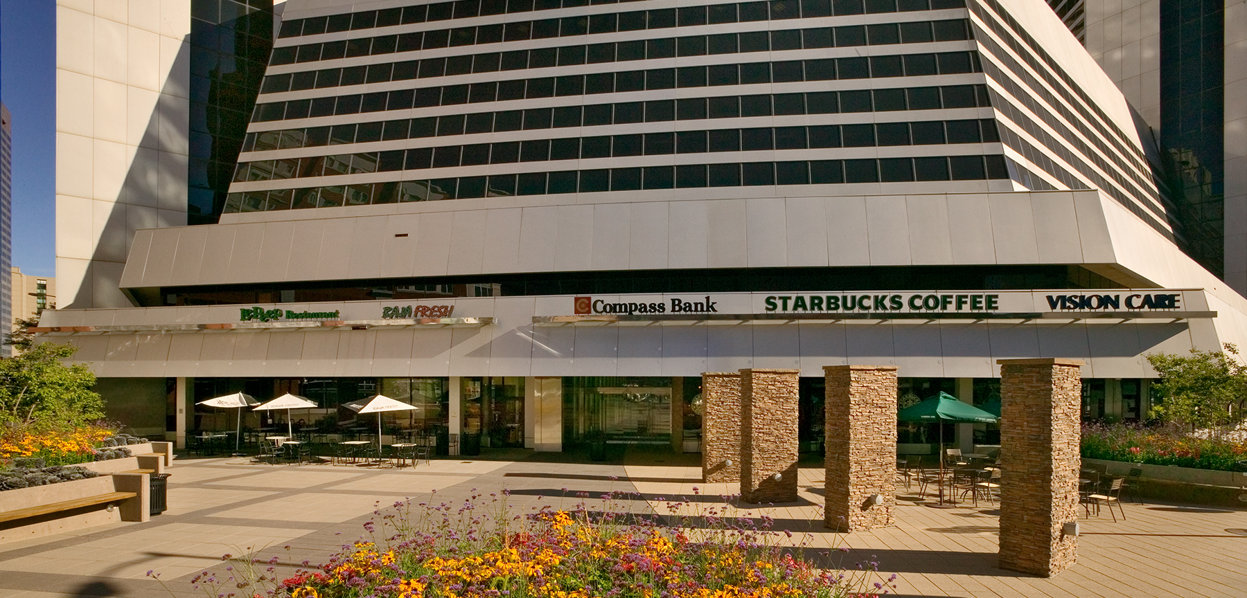 The property achieved Gold LEED-EB certification—the first in Colorado—and is an Energy Star–rated building. Notable projects included restaurant buildouts for Baja Fresh and Café 21, a Compass Bank expansion, and renovations to the north and south lobbies and elevator systems. All work was completed while the mall and office spaces remained fully operational.