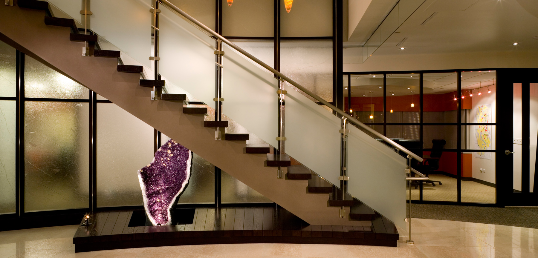 The tenant leased a second floor which was adjacent to the original and desired to join the floors with a state-of-the-art stairwell. In order to install the custom curved stairwell, structural steel enhancements in the tenant space below the clients were required. The concrete floors were x-rayed and cut after hours with all debris removed using internal elevators. Short beams were designed and hoisted in the elevator while the additional longer beams required were boomed externally to the building along with the stair case itself. Off hours street closures were required as the staircase and structural beams were meticulously hoisted and brought in through the window. The installation of the staircase continued through the multiple phases of the project.