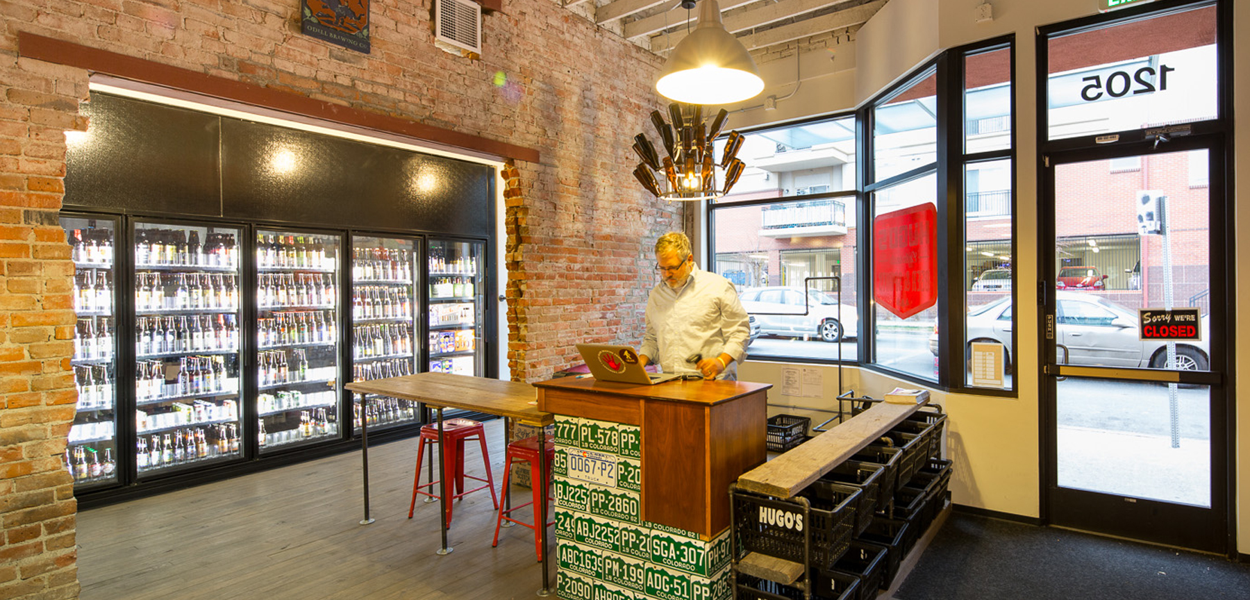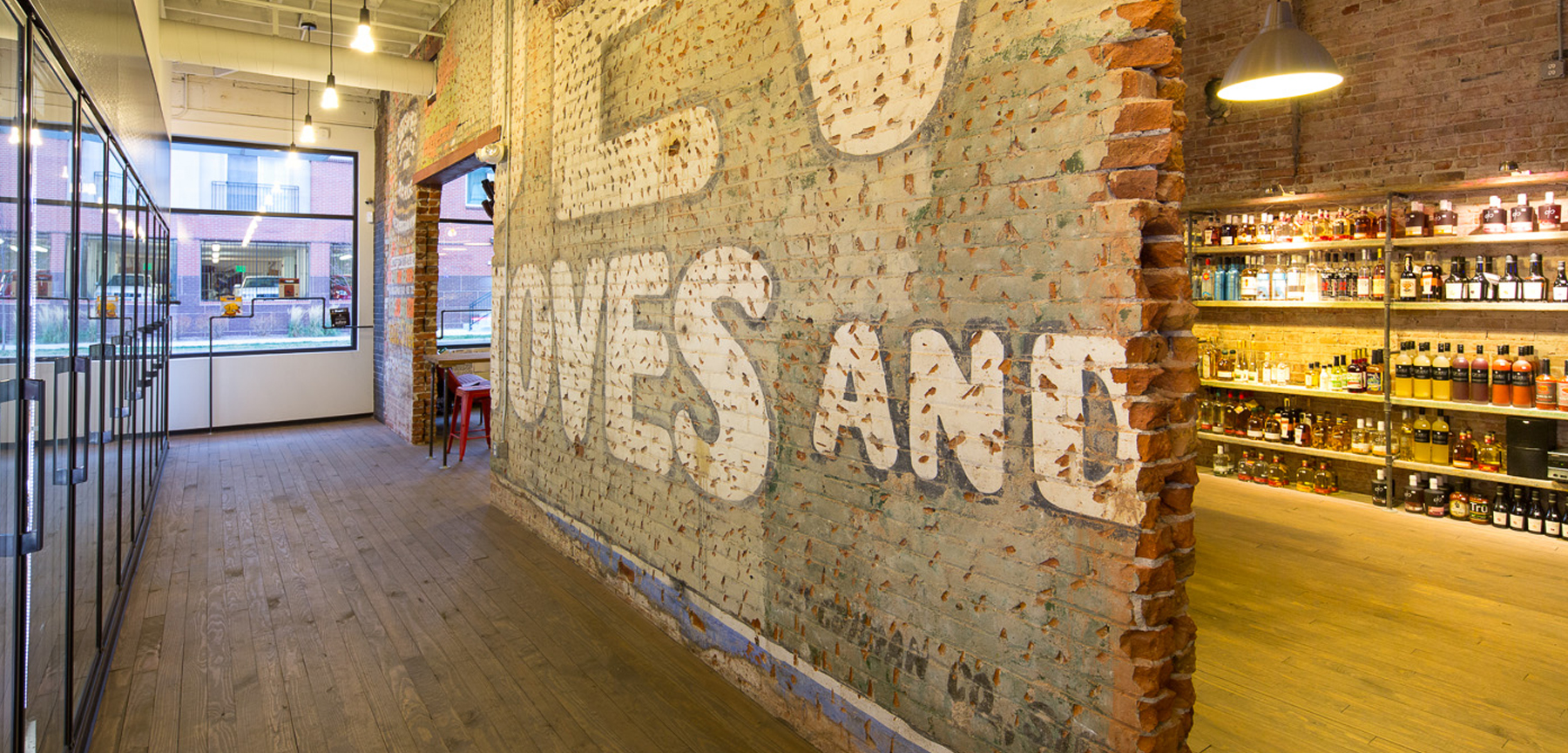 Hugo’s address, once a home to Nicolo’s Pizza, which is now in a larger space next door, was set to be a home to a small Mexican restaurant, but instead Hugo’s took over. The existing space was a challenge due to it being a closed in space. Jordy Construction cut and structurally stabilized two openings in the existing 18’ brick load bearing wall to give the space an open concept. Structural openings were just the beginning in this full renovation project. After selective demolition of many of the existing surfaces, new electrical, plumbing, refrigeration, and HVAC were installed. Hugo’s Colorado Beer and Spirits does not feel like a liquor store. The walls are exposed brick, the shelving is made of gas pipe and scaffolding, and the new wood floor was finished to look like the original flooring of the building. There is also an ancient chalk mural inside the space that was part of the building when one of the walls faced the exterior. This project was completed in four workings weeks to meet the Owners schedule. With communication and commitment, this 1,400 square foot project is a real treasure. The vibe of the space is raw, handmade and comfortable.