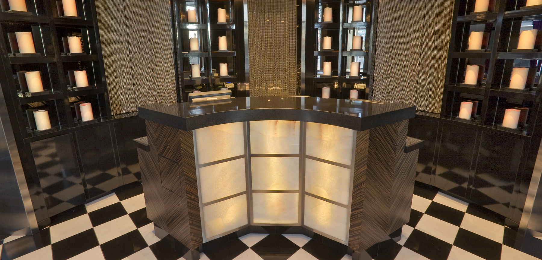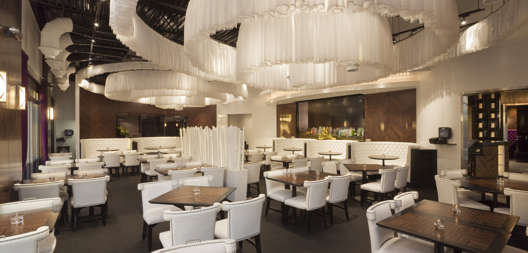 Jing was built in the Landmark development and is like no other restaurant in the region. This illustrious restaurant features meticulous attention to construction detail on all the fine finishes. Jordy Construction worked carefully with the design team and owner with careful coordination with other trades working outside the core of the building. The end result is an exceptional restaurant constructed by highly skilled craftsman attentive to every detail. Even before you enter Jing, Charlie Huang’s and co-owner Michael Ditchfield’s sleek, chic restaurant in Greenwood Village, the attention to detail paid to the design is inescapable. Two metal entrance doors, painted high-gloss black, stand 10 feet high and 6 feet across. Staged in a precise pattern are 189 (count ‘em) brushed aluminum circular billets, which run top to bottom and edge to edge. As you move into the dining room the welcoming feeling is amplified. Turning up the ’wow’ factor is a pair of round fabric chandeliers suspended from the ceiling. “The curtains are based on an Archimedean spiral,” says Ross Rosenow, Jordy’s project manager. “The pattern is a double-acting spiral, you can see how it winds out then winds back in a very yin and yang configuration.” The fastidious craftsmanship has created a buzz for Jing heard throughout the metro area. Prompting many to not only enjoy the fine Asian cuisine, but to relish in the details of the finely built space.