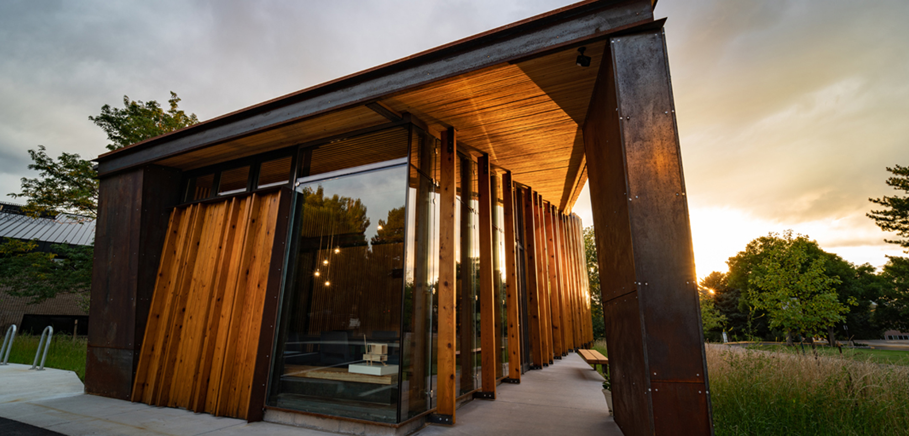Jordy Construction and our trade partners collaborated with One Line Studio on this one-of-a-kind architectural studio in Greenwood Village that incorporates many natural materials and systems such as Dowel Laminated Timbers (DLT), redwood fins, naturally rusted metal panels & standing seam roof, minimal structural steel, and SADEV clip frameless windows. All these materials seamlessly integrate into a setting of Colorado native grasses and plants to form a single harmonious package that stops passersby in their tracks to admire this functional piece of architectural art.