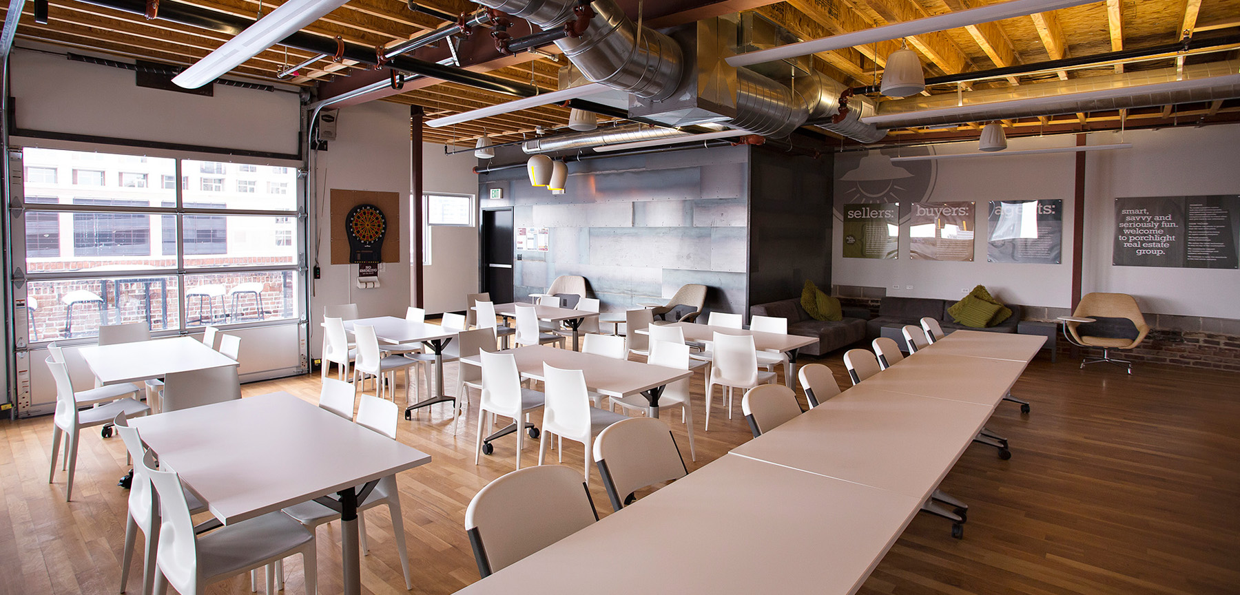 This project consisted of a 2-phased occupied 3,800 square foot, 3-story remodel for PorchLight Real Estate Group. It took approximately eight weeks to complete. PorchLight is self-proclaimed smart, savvy and seriously fun and they strive to make their client’s experience as comfortable and stress-free as possible. The goal was to translate that into their new space. Jordy Construction teamed with Heltshe Design to make that vision a reality.