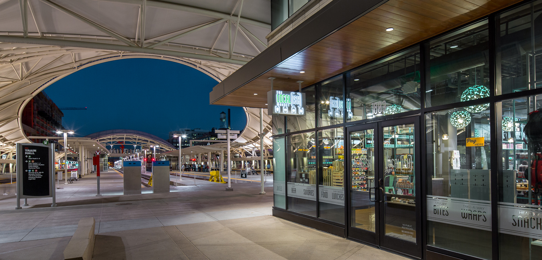 Jordy Construction was referred to the owners of The Local(ish) Market by two independent sources—the design firm and a previous retail client—based on successfully completed projects with both parties, and was awarded this 2,250 SF retail buildout in a new shell space at the south end of the Union Station railroad platform based on these referrals and a brief interview with the client. The project was a successful buildout of a European-inspired train station interior design with open ceilings, clean lines, stained and polished concrete floors, and faux oxidized copper shelving. The end result provided a beautiful space for travelers and locals alike to purchase locally sourced snack and meal items while traveling through Union Station or working in the downtown area.