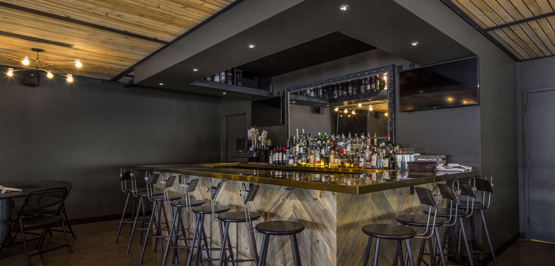 The Pig & The Sprout was a complete buildout of a new restaurant with a structural mezzanine from a core shell space with occupied residential above and parking garage below. The restaurant includes the kitchen, 4 separate unisex restrooms, bar, dining room, and wine storage on the main level. The mezzanine includes dining/lounge space, bar, office, employee lockers, restroom as well as mechanical service area. The space has a ceiling height of 27’.