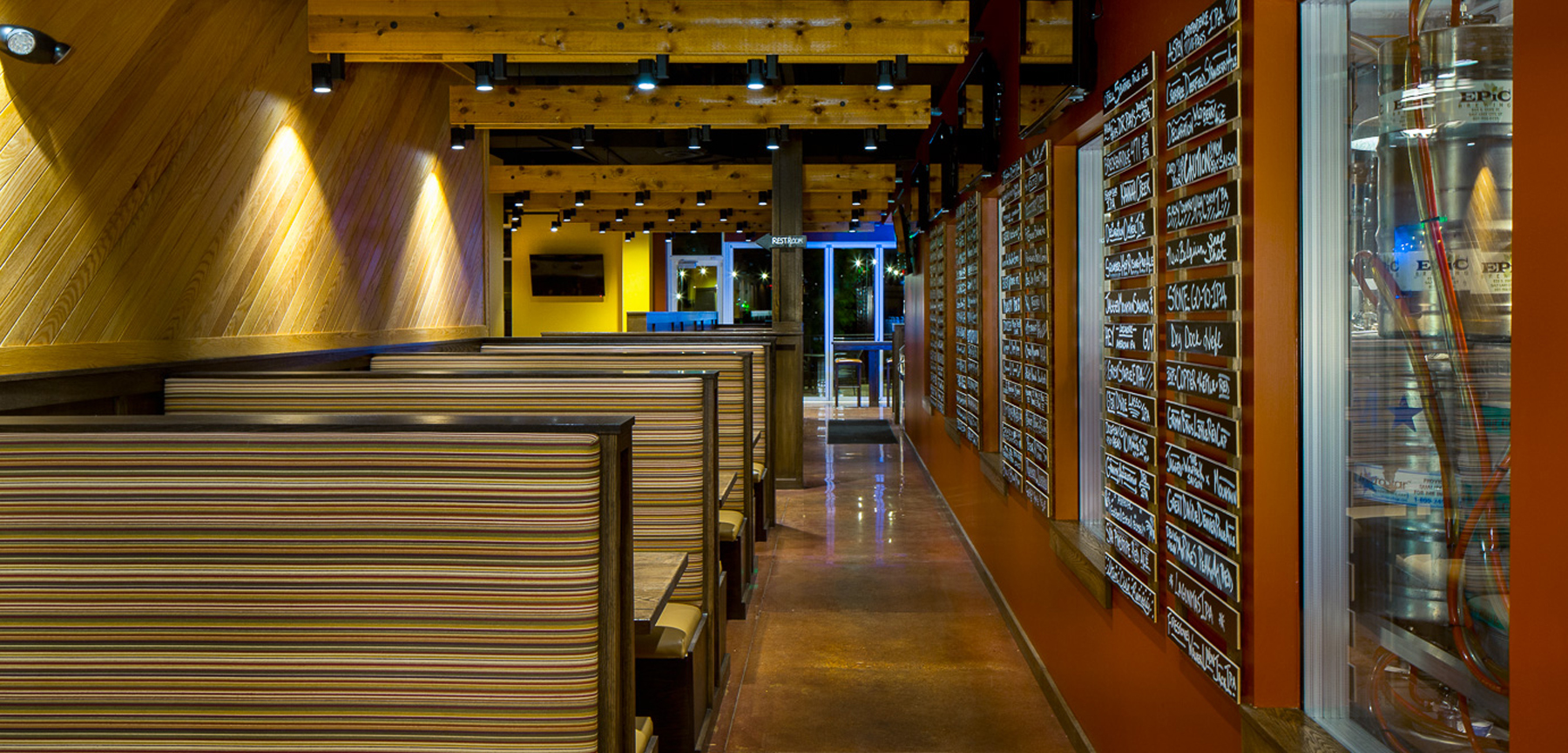 Jordy Construction remodeled the former home of the Celtic Tavern on West Belleview Avenue into a new restaurant for The Pint Room. The location of the kitchen and the restrooms were re-used in order to take advantage of the existing hood, MAU and underground plumbing lines that were already tied to the existing grease interceptor. All new bar and kitchen equipment was installed. The entire restaurant dining room and bar interior was completely gutted remodeled, to make way for a custom 43’ long by 7’ wide keg cooler in the middle of the restaurant to separate the bar from the dining area. New exterior Nana Wall operable windows were installed in three locations to include the large patio with the bar and community table area of the restaurant.